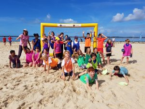 Une superbe sortie sur la plage Perreire d arcachon. 26 élèves de niveau 6ème et 5ème, licenciés à l association sportive, ont participé à la journée des benjamins en pratiquant l ultimate, et le sandball avec en prime une baignade dans l océan avec une météo au top.