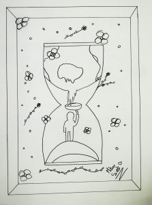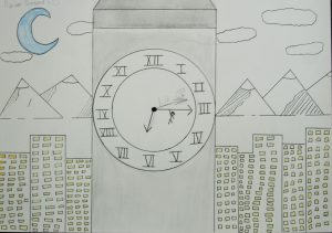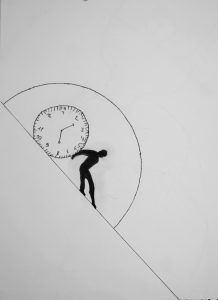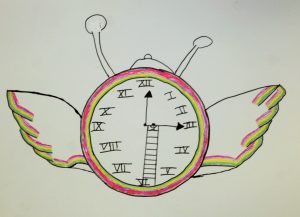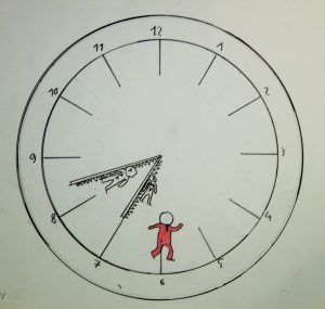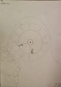 Représenter un personnage ou un élément qui joue avec le temps ( qui le retient, le transforme, l’étire, le suspend , l’arrête, l’accélère, le ralentit…).