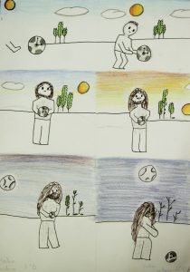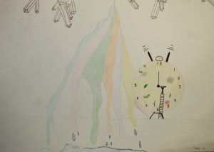 Le temps/ Illustration 4B: « Jouez avec le temps »Représenter un personnage ou un élément qui joue avec le temps ( qui le retient, le transforme, l’étire, le suspend , l’arrête, l’accélère, le ralentit…).