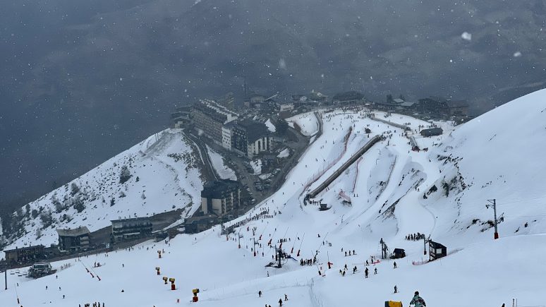Après une nuit tempétueuse nous avons débuté cette première journée de ski sous un temps mitigé: vent, neige et un peu de soleil.