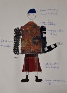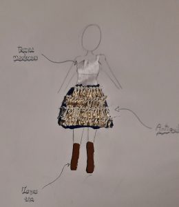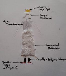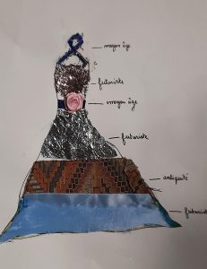 Prendre un Vêtement ancien ou traditionnel et le moderniser ou prendre un objet contemporain et transposer le à une autre époque.(maquette) Robe année 30 Sari indien autres: Chapeau à bec Boubou africain haut de forme Kimono